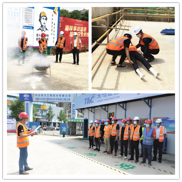 在啟動(dòng)儀式結(jié)束后,由中冶南方國(guó)際社區(qū)項(xiàng)目安全主管徐國(guó)良進(jìn)行安全生產(chǎn)月教育培訓(xùn)宣講,并開展施工現(xiàn)場(chǎng)高處墜落應(yīng)急救援演練,模擬火災(zāi)狀況并講解防火常識(shí)及滅火器材的使用,以及模擬突發(fā)受傷狀況并講解救援常識(shí)及注意事項(xiàng)。
