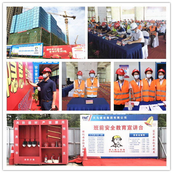 今年是第19個(gè)全國(guó)“安全生產(chǎn)月”,主題是“消除事故隱患、筑牢安全防線”。為了推進(jìn)本年度“安全生產(chǎn)月”活動(dòng)的有序開展,進(jìn)一步提升集團(tuán)安全文明施工管理水平,營(yíng)造出良好的安全生產(chǎn)氛圍,6月5日上午,武漢東湖高新住建局及天馬建設(shè)集團(tuán)2020年“安全生產(chǎn)月”啟動(dòng)儀式,在我司承建的中冶南方國(guó)際社區(qū)三期項(xiàng)目部隆重舉行。東湖高新區(qū)住建局張蓉局長(zhǎng),東湖高新區(qū)建管站站長(zhǎng)王萬連,武漢建設(shè)安全協(xié)會(huì)秘書長(zhǎng)李祥林,中冶南方安全生產(chǎn)部部長(zhǎng)司良,中冶南方(武漢)置業(yè)總經(jīng)理閆雙,天馬建設(shè)集團(tuán)總經(jīng)理高昌盛、監(jiān)事會(huì)主席張幼明、紀(jì)委書記李華彪、工會(huì)主席余勝利等及有關(guān)單位共計(jì)120余人出席了會(huì)議。