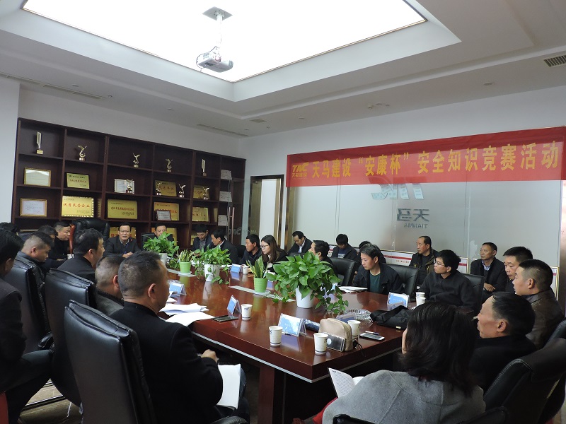 11月16日上午,天馬建設(shè)2018年“安康杯”安全知識競賽在公司會(huì)議室順利召開。此次競賽由集團(tuán)安全生產(chǎn)部主辦,綜合部協(xié)辦,旨在深入開展以“落實(shí)全員安全責(zé)任,促進(jìn)企業(yè)安全發(fā)展”為主題的安康杯活動(dòng),不斷加強(qiáng)全體職工的安全管理與監(jiān)督工作。集團(tuán)總經(jīng)理高昌盛、總工程師余勝利出席了本次競賽并作出動(dòng)員,來自各在建項(xiàng)目部的14支代表隊(duì),共計(jì)40余名員工參加了競賽。