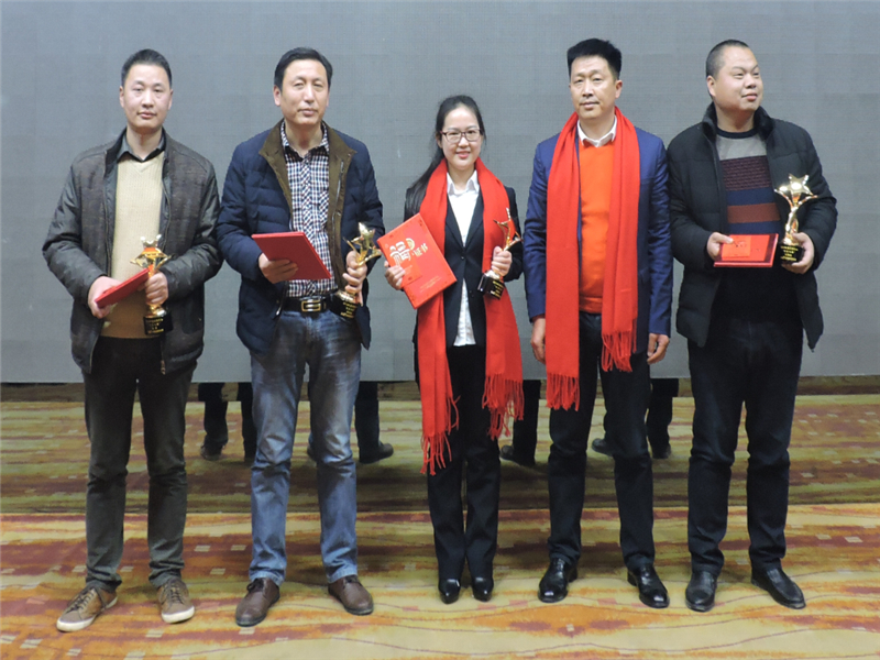 天馬建設(shè)集團“2016年度優(yōu)秀員工——天馬之星獎”:“中冶南方國際社區(qū)一期四標(biāo)段項目”項目經(jīng)理 張勇;“江騰廣場項目”技術(shù)總負責(zé)人 王詠鐵;“天馬建設(shè)集團”財務(wù)室 汪珍才;“德成國際文化創(chuàng)意軟件園一期A區(qū)工程”現(xiàn)場負責(zé)人 劉澤詠。頒獎人:集團監(jiān)事會主席張幼明。
