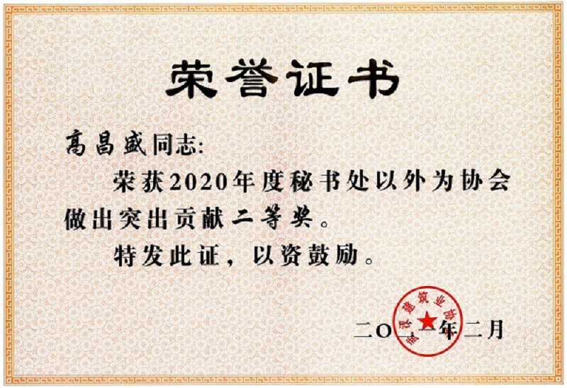 高昌盛獲2020年度秘書處以外為協(xié)會做出突出貢獻二等獎